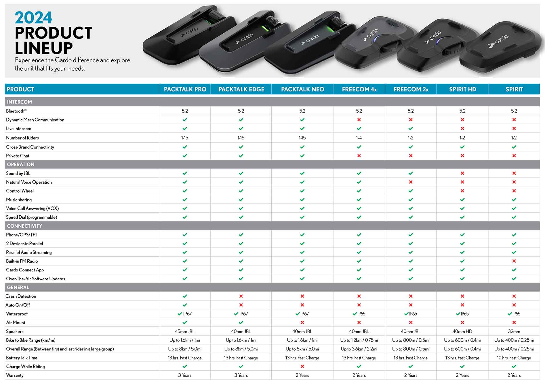 • Dynamic Mesh Communication 2.0, Tot 15 rijders, tot 1,6 km bereik